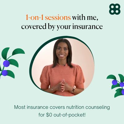 To use your insurance benefits for nutrition counseling, please click here to book a session. Most clients pay $0 out of pocket and you will always be notified of any co-pay before being expected to pay a dime.
